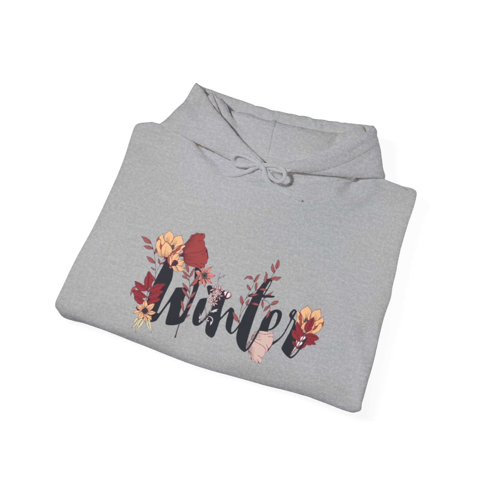 Winter Floral Hoodie — Cozy White Pullover with 'Winter' Script and Botanical Design
